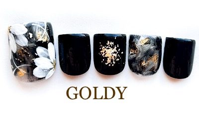 ブラックベースに花と金箔が映える♪着物にも合いそうな和モダンネイル♪