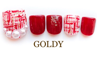 フットの親指全体のツイードがぱっと見でも可愛い!赤で美白効果も♪